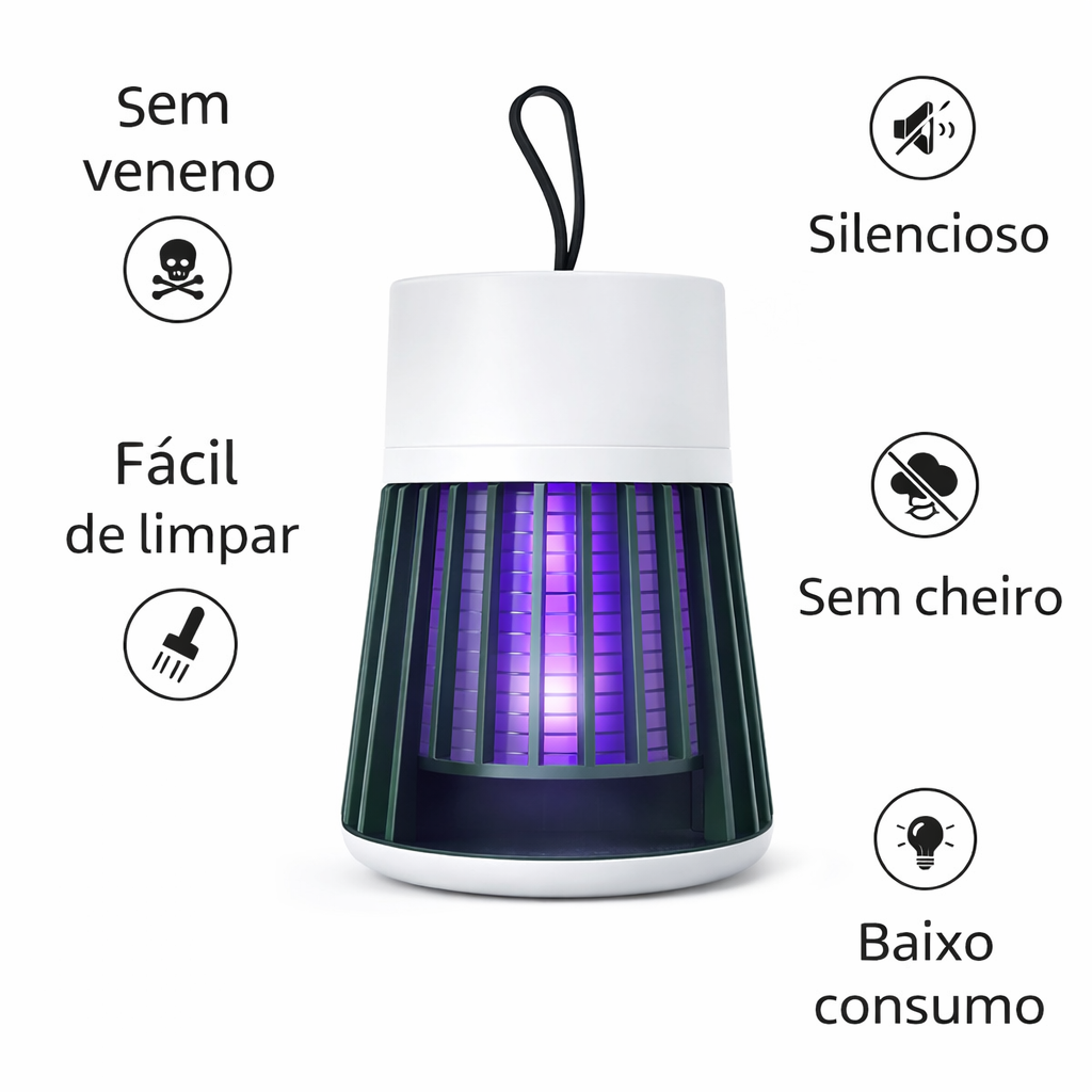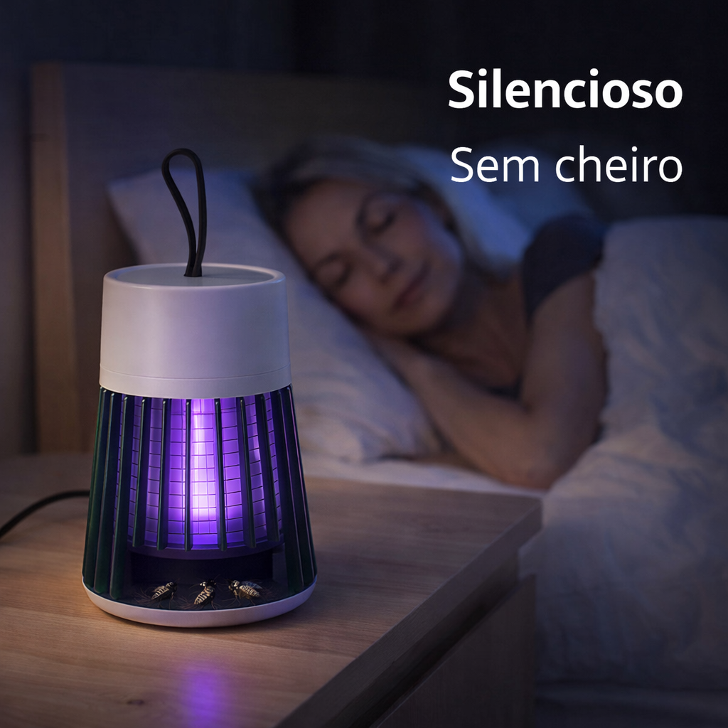 Essa luminária com luz UV ajuda a reduzir os insetos enquanto você descansa, sem cheiro, sem spray e sem barulho.